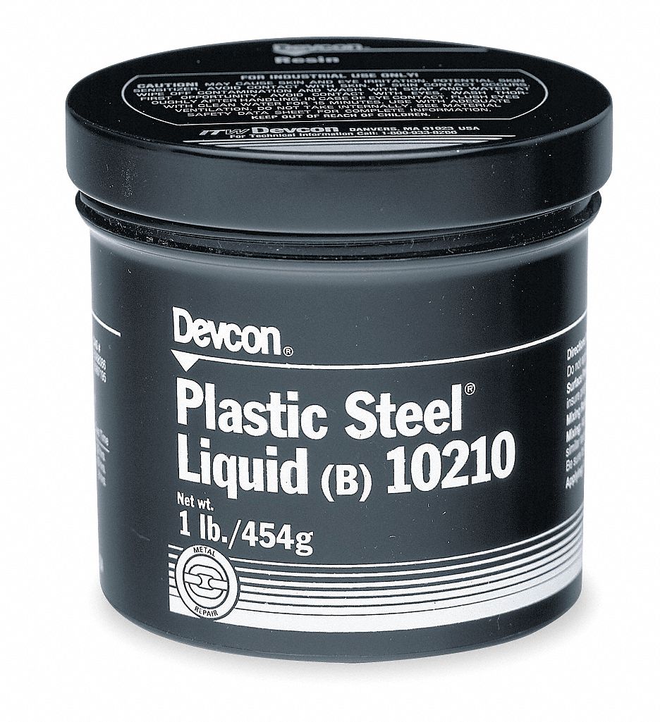 Devcon itw 10210 plastic steel liquid b is a 2 part room temperature cure epoxy liquid used to mold making and repair plastic and steel. This product is a steel filled. Brush a thin coat of epoxy onto the substrate to be duplicated then pour plastic steel liquid b. Slower hardener 90 min.